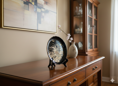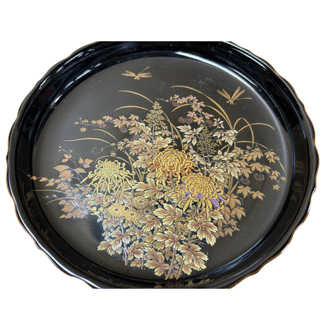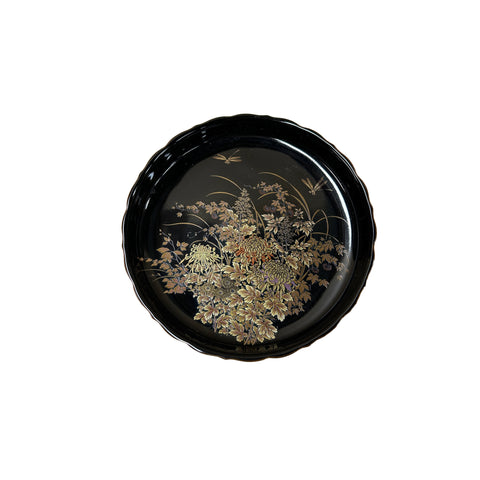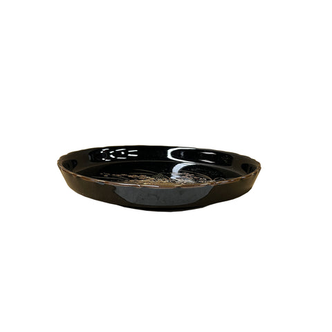 7.5" Oriental Black Glaze Porcelain Charger Plate Golden Flower Graphic GB172S