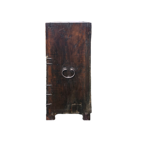 Asian Pattern Brown Black Hardware Drawers Accent Storage Cabinet GB319S