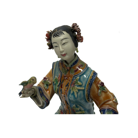 Chinese Porcelain Qing Style Dressing Bird Dog Lady Figure JK247S