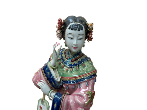 Chinese Porcelain Qing Style Dressing Holding Fan Lady Figure GB055S