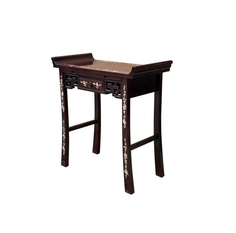 Chinese Rosewood Mother of Pearl Tall Shrine Offering Altar Console Table GB036S