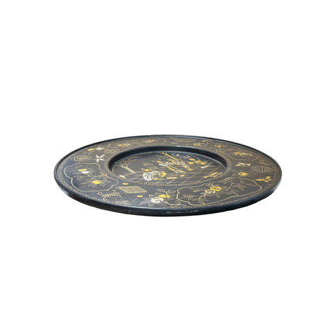 Chinoiseries Brown Lacquer Golden Graphic Wood Display Disc Art GB198S
