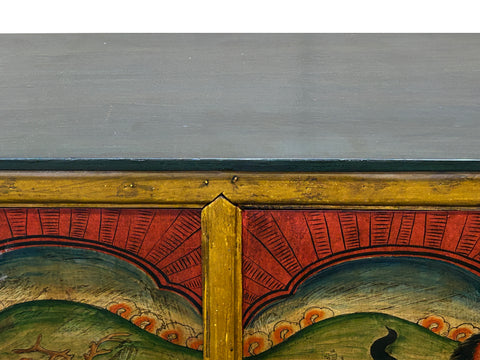 Multi-color Tibetan Horses Deer Motif Credenza Table Cabinet GB047S