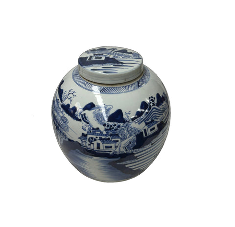 Oriental Blue White Scenery Porcelain Large Ginger Jar GB644S