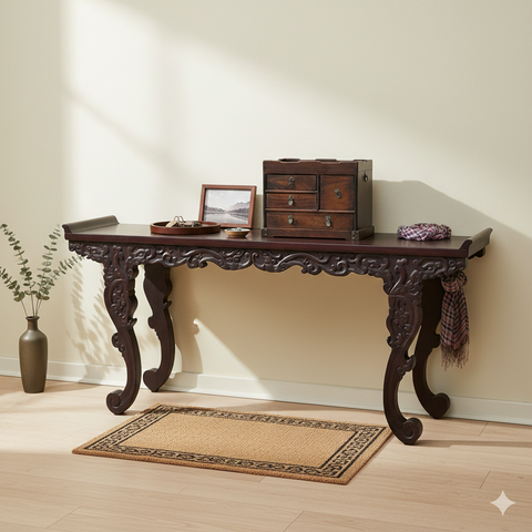 Functional details like the swing-style side handles and reinforced metal corner brackets suggest a piece built for both portability and longevity. The scalloped edges of the top rim provide a decorative, soft silhouette, making it an elegant storage solution for jewelry, stationery, or small keepsakes.