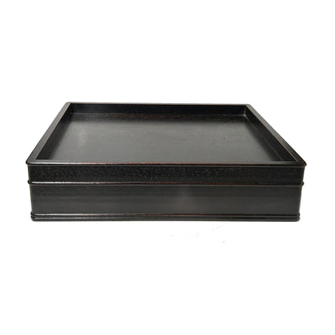 This elegant, dark brown wooden display tray combines minimalist geometry with functional antique charm. Crafted with a square silhouette, the piece features a sunken top surface framed by a subtle gallery rail, making it an ideal platform for showcasing collectibles or serving as a refined desk organizer. The wood exhibits a deep, espresso-toned finish with a visible, fine-grain texture that catches the light, while soft reddish undertones peek through the edges, suggesting a rich, aged patina.
