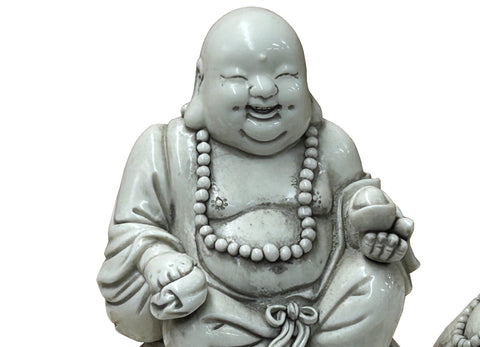Oriental White Happy Laughing Buddha Ru Yi Porcelain Figure GB023S