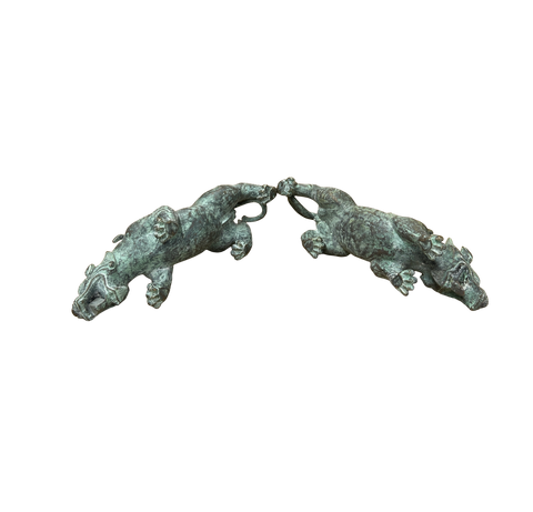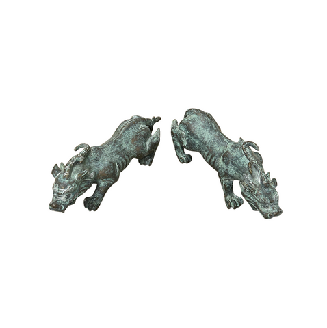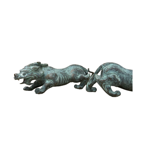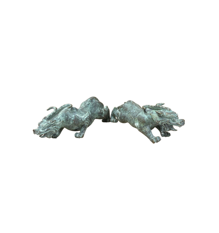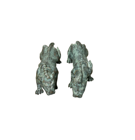 Pair Chinese Rustic Oxidized Patina Fengshui Pixiu Metal Figure GB008S