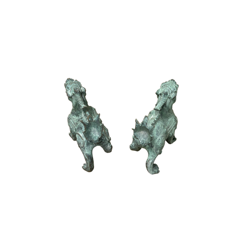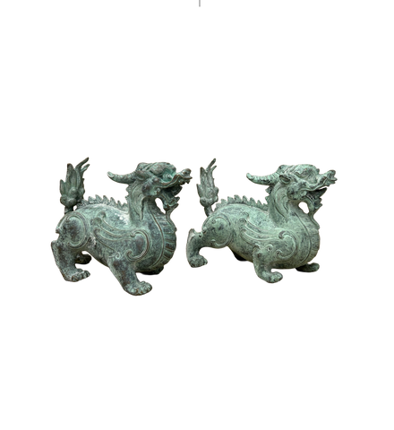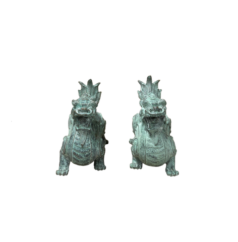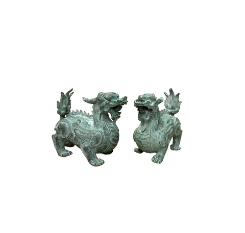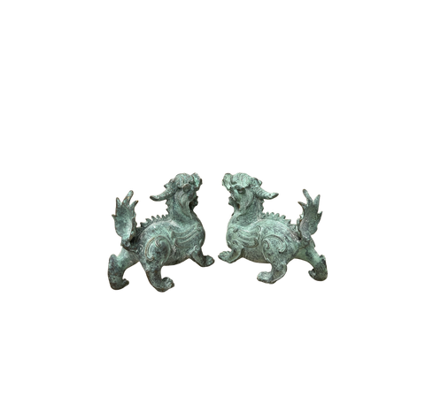 Pair Chinese Rustic Oxidized Patina Fengshui Pixiu Metal Figure GB011S