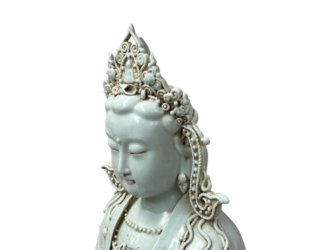 Pale Celadon White GuanYin Bodhisattva Tong Style Porcelain Statue GB078S