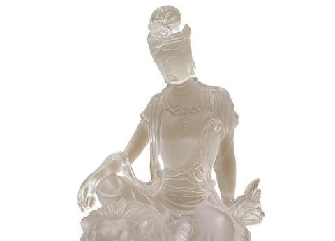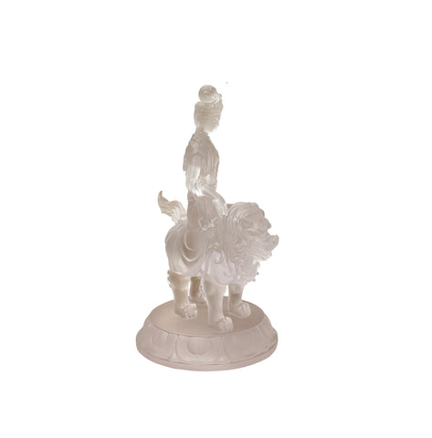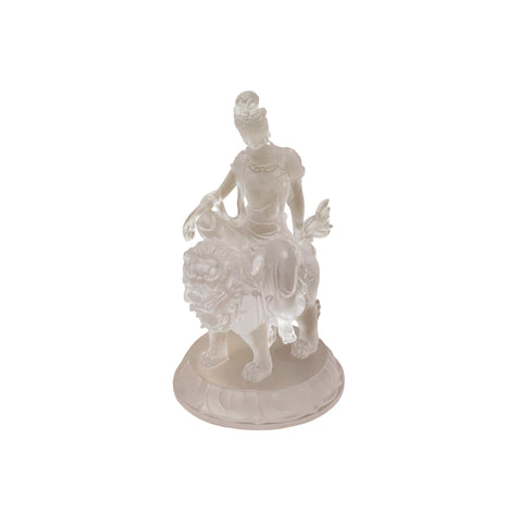 White Crystal Glass Liuli Pate-de-Verre Manjushri Kwan Yin Bodhisattva Statue GB026S
