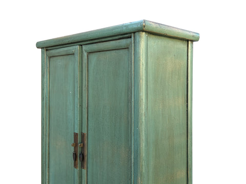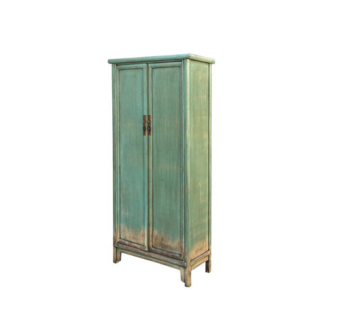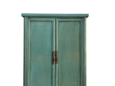 Oriental Distressed Light Teal Green Tall Narrow Noodle Cabinet Armoire GB034S