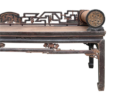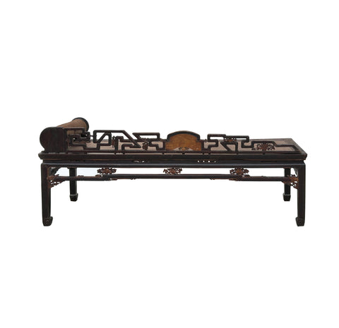Vintage Chinese Fujian Chinoiserie Style Motif Carving Day Bed Chaise Bench GB030S