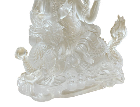 4" White Crystal Glass Tibetan Fortune Double Body Deity Zambala Figure GB059S