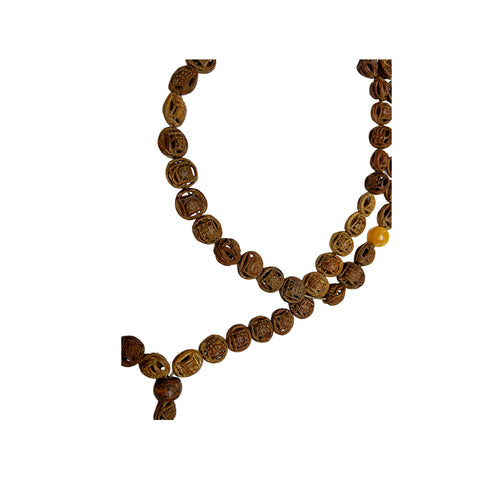 Brown Carved Flat Bean Shape Beads Hand Rosary Praying Chain ws4881S