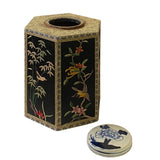 Chinese Black Hexagon Container Flower Birds Embroidery Porcelain Cover ws2659S