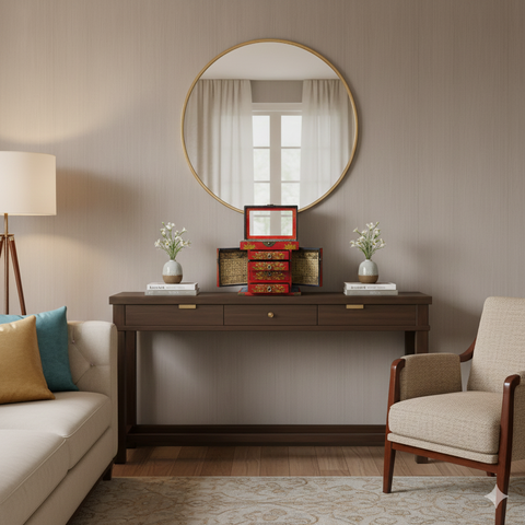 Chinese Oriental Red Flower Birds Mirror Rectangular Jewelry Box GB214S