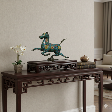 The design is anchored by an intricate, openwork fretwork apron featuring classic geometric scrolls, which adds a sense of airy sophistication to the sturdy base. Its recessed top surface is framed by a delicate raised lip, designed to securely cradle and elevate prized collectibles such as bonsai trees, porcelain vases, or scholar’s stones.