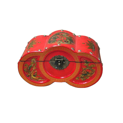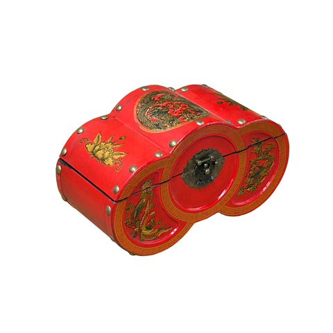 Oriental Bright Red Dragon Phoenix Graphic Circles Shape Container Box GB220S