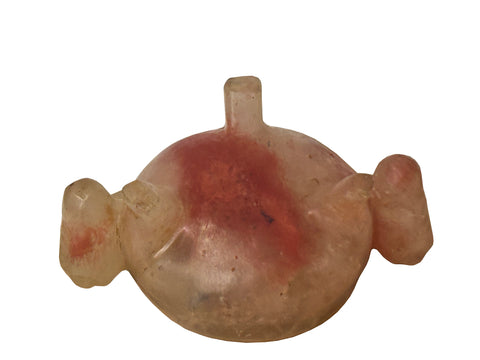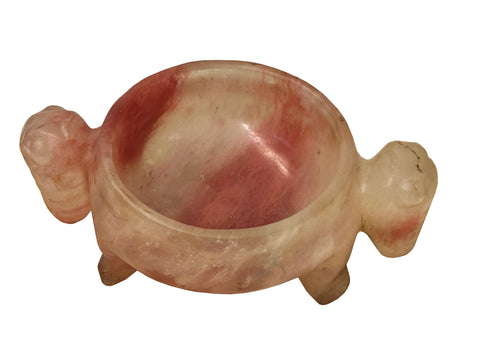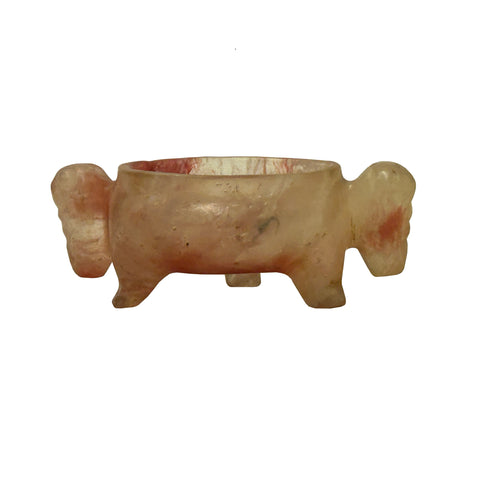 Discover the timeless elegance of this exquisitely crafted stone bowl, a stunning piece that blends ancient artistry with modern sophistication. Carved from translucent pink and white quartz, this hand-sculpted vessel features a unique tripod design with intricately detailed animal head supports, adding a touch of mystique and cultural richness to any space. Perfect for use as a decorative centerpiece, a holder for crystals, or a ceremonial offering dish, its smooth, polished surface and natural color variations exude warmth and serenity. Ideal for home décor enthusiasts, spiritual practitioners, or collectors of artisanal treasures, this one-of-a-kind bowl brings a sense of history and tranquility to your environment.