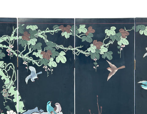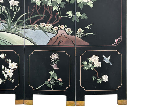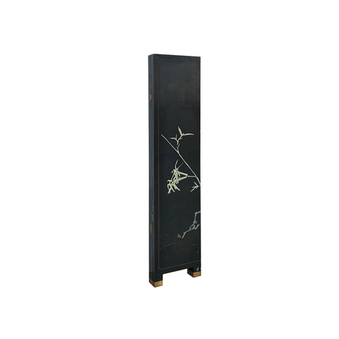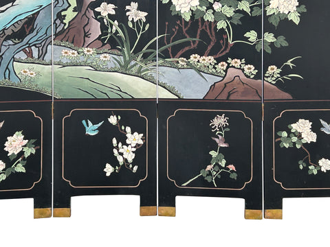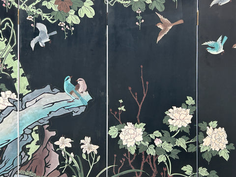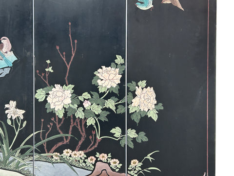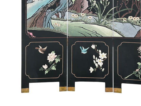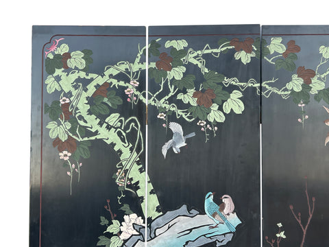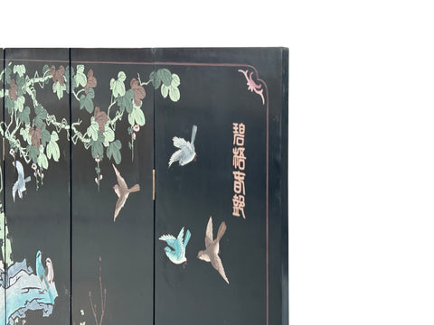 Chinese Black Base Color Flower Birds Graphic Floor Screen Divider GB121S