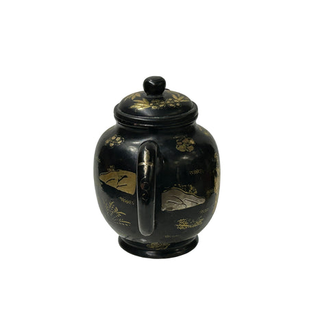 Chinese Black Glaze Golden Graphic Yixing Zisha Clay Teapot Art GB339S