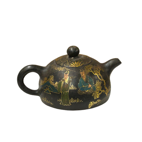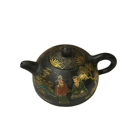 Vintage Chinese Black Golden Graphic Zisha Clay Teapot Art Display GB135S