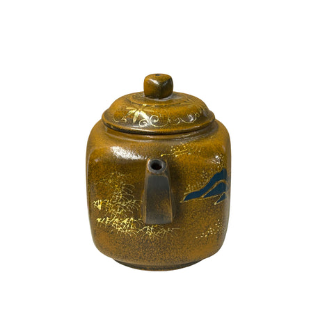 Vintage Chinese Mustard Yellow Graphic Zisha Clay Teapot Art Display GB138S