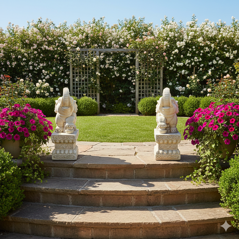 trunk up elephant statues - Chinese white marble elephant garden statue