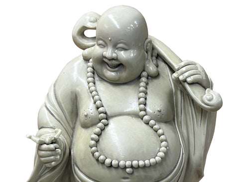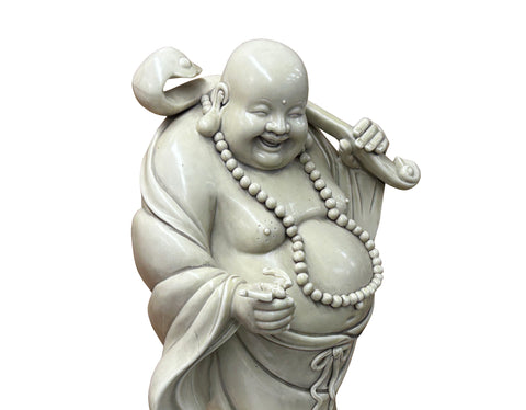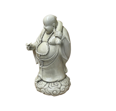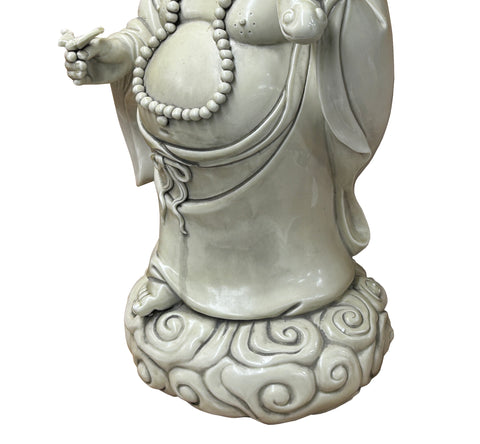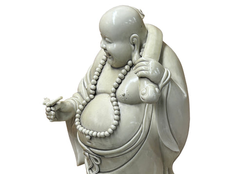 Oriental White Standing Happy Laughing Buddha Ru Yi Bat Porcelain Figure GB020S