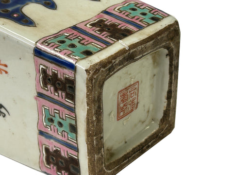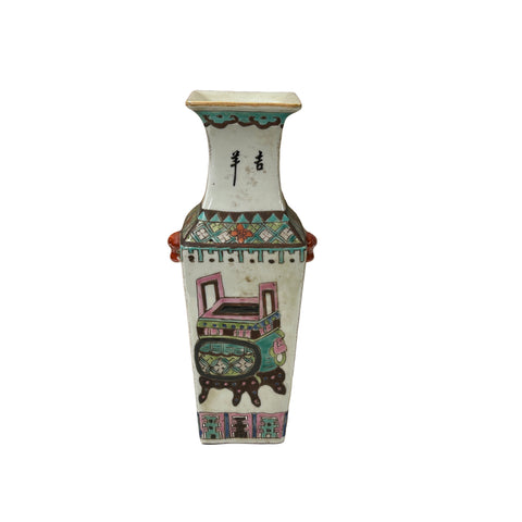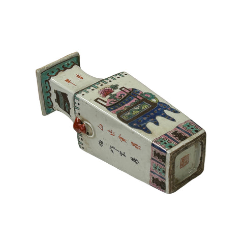 Chinese White Canton Famille Mille Graphic Square Porcelain Vase ws4888S