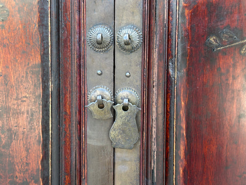 Condition: hand made, wood joint lines, distressed wood gap expansion repair-marks , missing hardware
