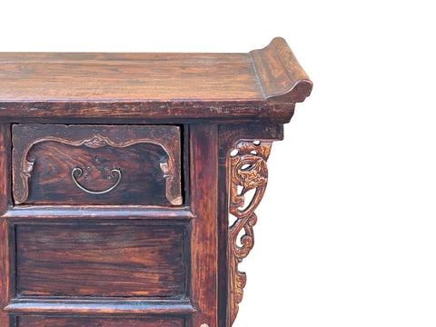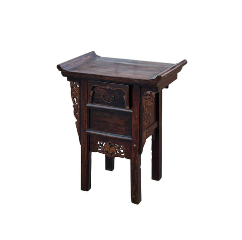 Vintage Chinese Oriental Brown Ru Yi Drawer Altar Foyer Side Table GB114S