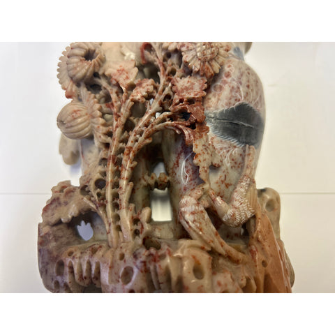 Vintage Chinese Soapstone Floral Carving Display Vase Art ws3678S