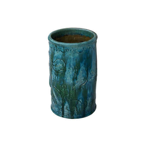Behold the charm of the Vintage Chinese Turquoise Green Lotus Koi Fishes Ceramic Column Vase – a captivating fusion of traditional elegance and artistic craftsmanship. This exquisite vase draws inspiration from Chinese culture, featuring a mesmerizing turquoise green glaze that adds a refreshing and vibrant touch to any space.