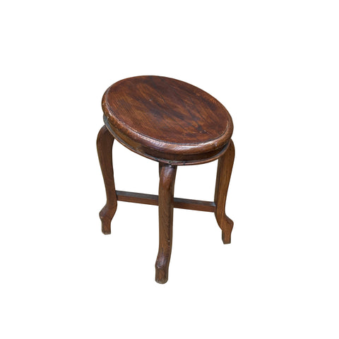 Vintage Oriental Oval Brown Cross 4 Legs Wood Stool ws4905S